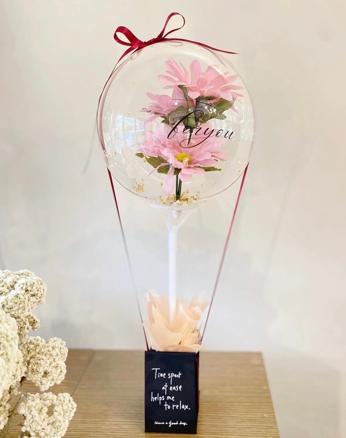 透明なバルーンの中に、やさしく咲くお花を閉じ込めた特別なフラワーギフト。